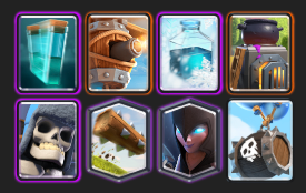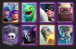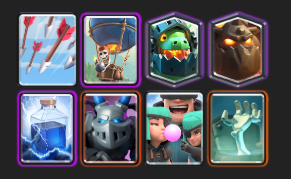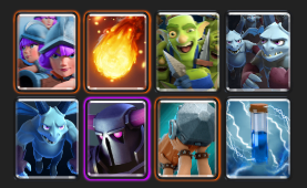 번개, 독, 로켓까지 상대방의 대형 유닛에 대응할 수 있는 모든 마법을 갖추어 놓고, 상대방의 고급 유닛들을 괴롭혀 주는 덱입니다.