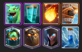 전형적인 힘싸움 덱으로, 방어는 메가나이트와 일렉트로 법사, 인페르노 드래곤이 담당해 줍니다.