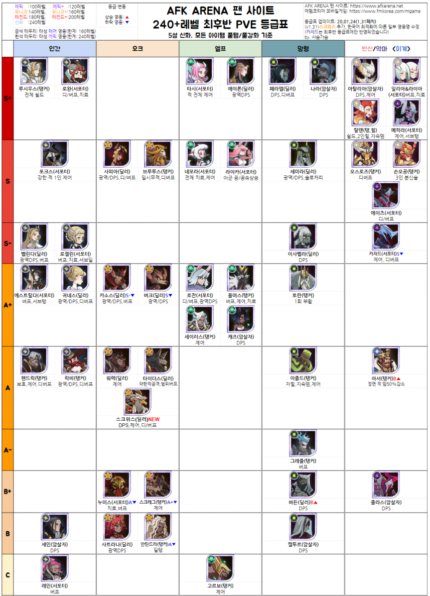 AFK 아레나 캐릭터 등급표 & 교환 코드 정리