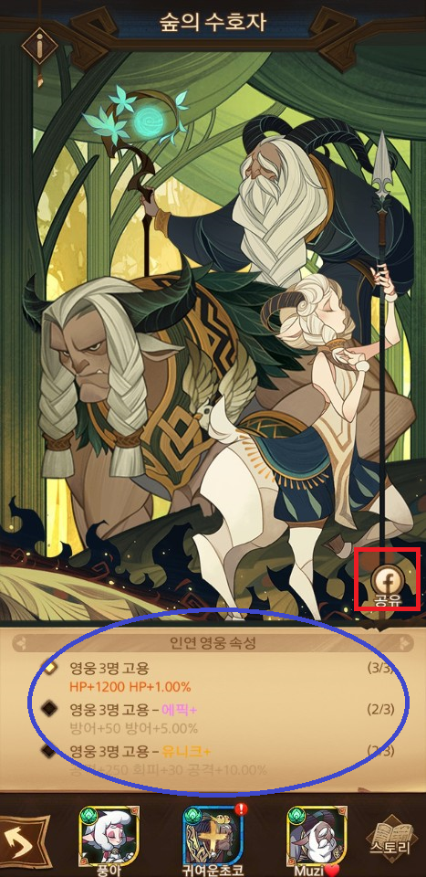 인연 영웅 속성이 변경되어 페이스북 공유 버튼이 떴습니다.