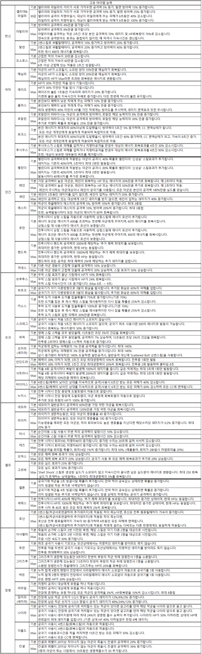 전용장비 옵션 총 정리