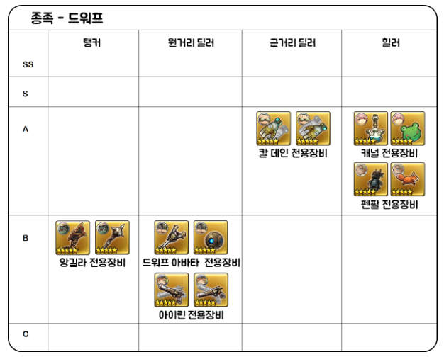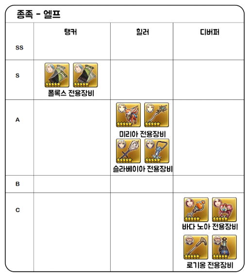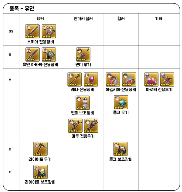 맨 아래에 있는 장비 등급표 보고 5성장비 개수 목표잡고 리세마라 하시면 되겠습니다.
