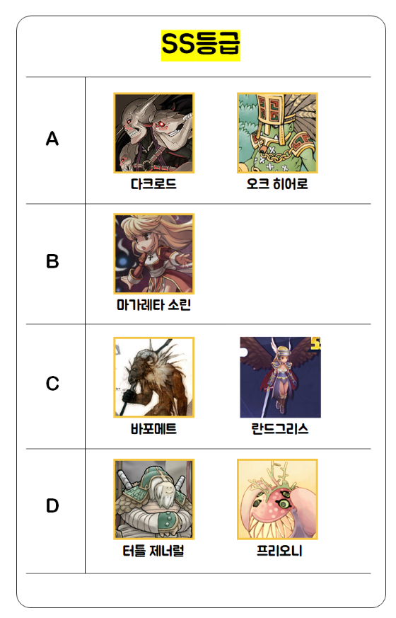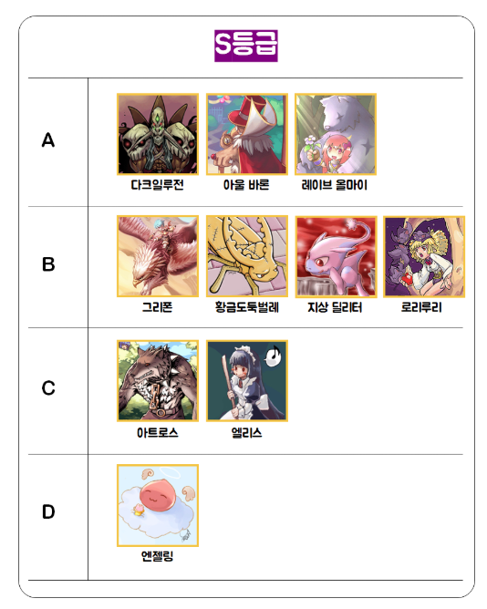 라그나로크 택틱스 캐릭터 등급표 총정리