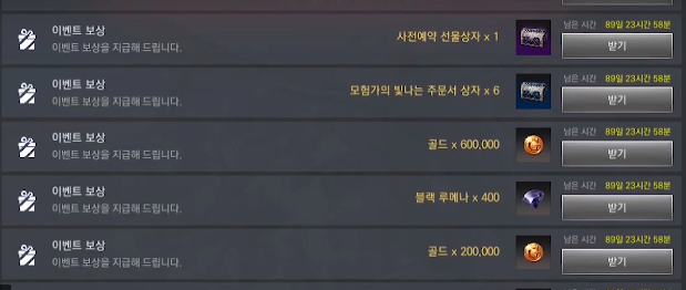 3. 우편함 -> 계정 탭으로 들어가 들어온 재화를 모두 받아 줍니다.