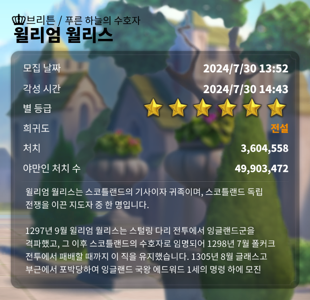 윌리엄 윌리스를 각성한 유저는 한국 서버에서도 손에 꼽을 것이라고 보고 있다.