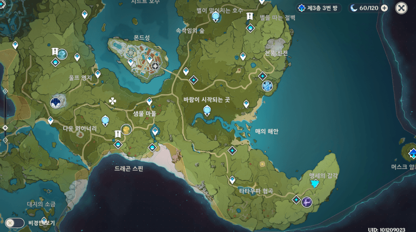 눈동자 수량은 몬드 지역이 100개 좀 안되고 리월 지역이 150개 가까이 됩니다.